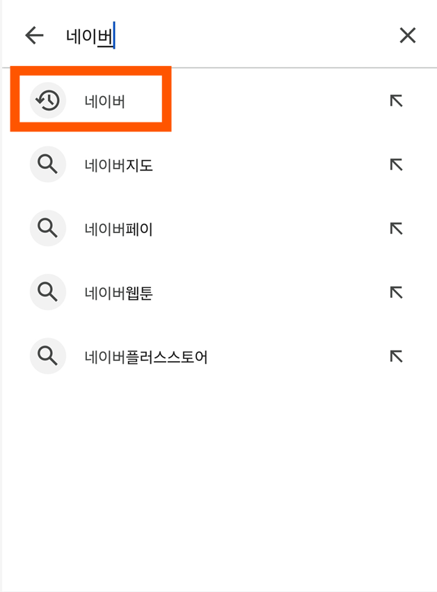검색 메뉴에 들어가면 상단에 검색창이 보일 거예요. 여기에 '네이버'라고 입력하면 됩니다.